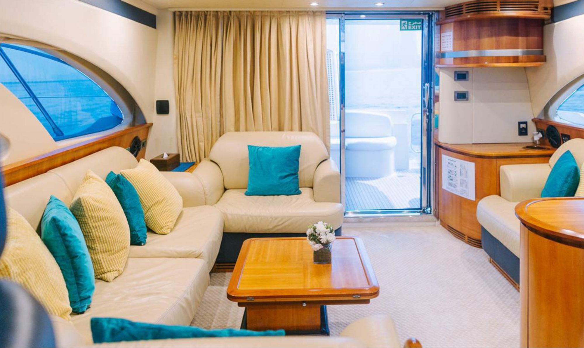 - Striking Exterior Profile: The yacht’s sleek, modern profile is instantly recognizable as an Azimut, offering a stylish presence as you cruise past iconic Dubai landmarks .