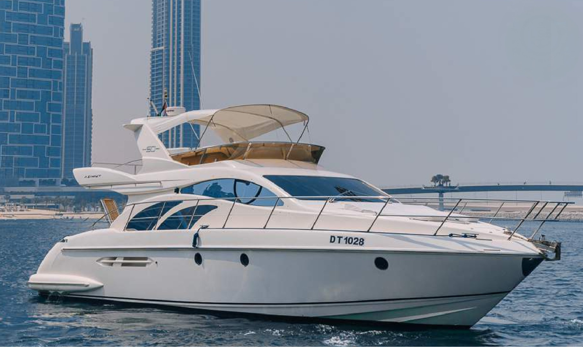 Step aboard the Azimut 50ft “Monica”, an Italian-manufactured motor yacht designed to provide a perfect balance of comfortable luxury and social entertainment for your Dubai charter. This yacht is ideal for day trips with a medium-sized group or an intimate overnight escape for close friends or family.